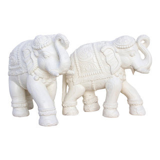 Set Of 2 Painted White Elephant Statues Mediterranean Decorative Objects And Figurines By De Cor Houzz
